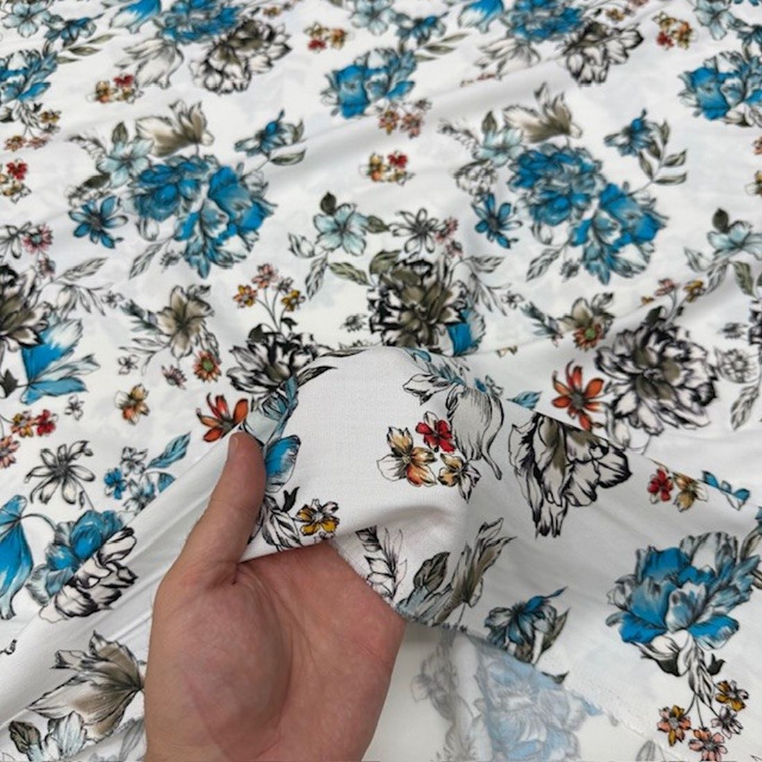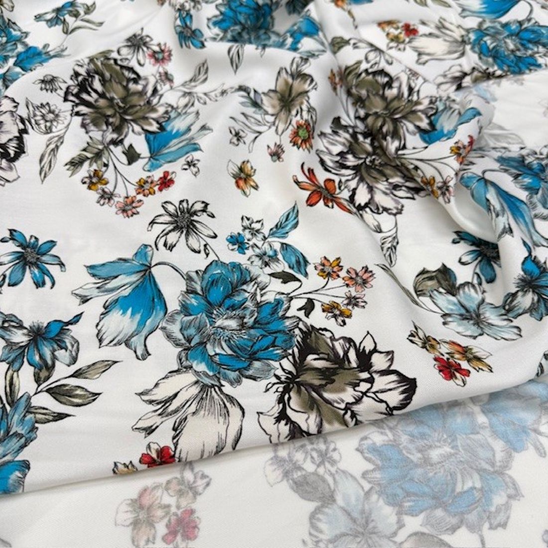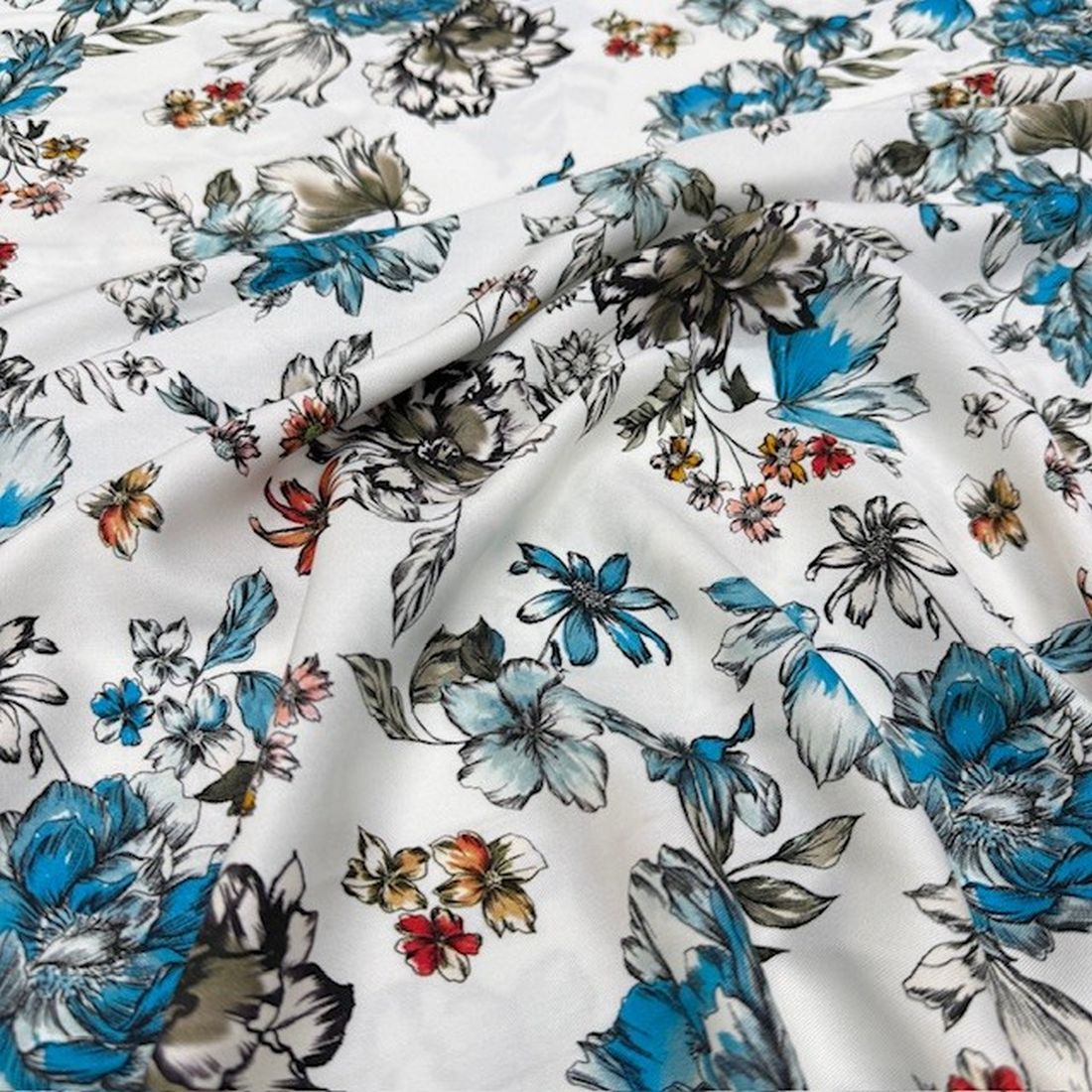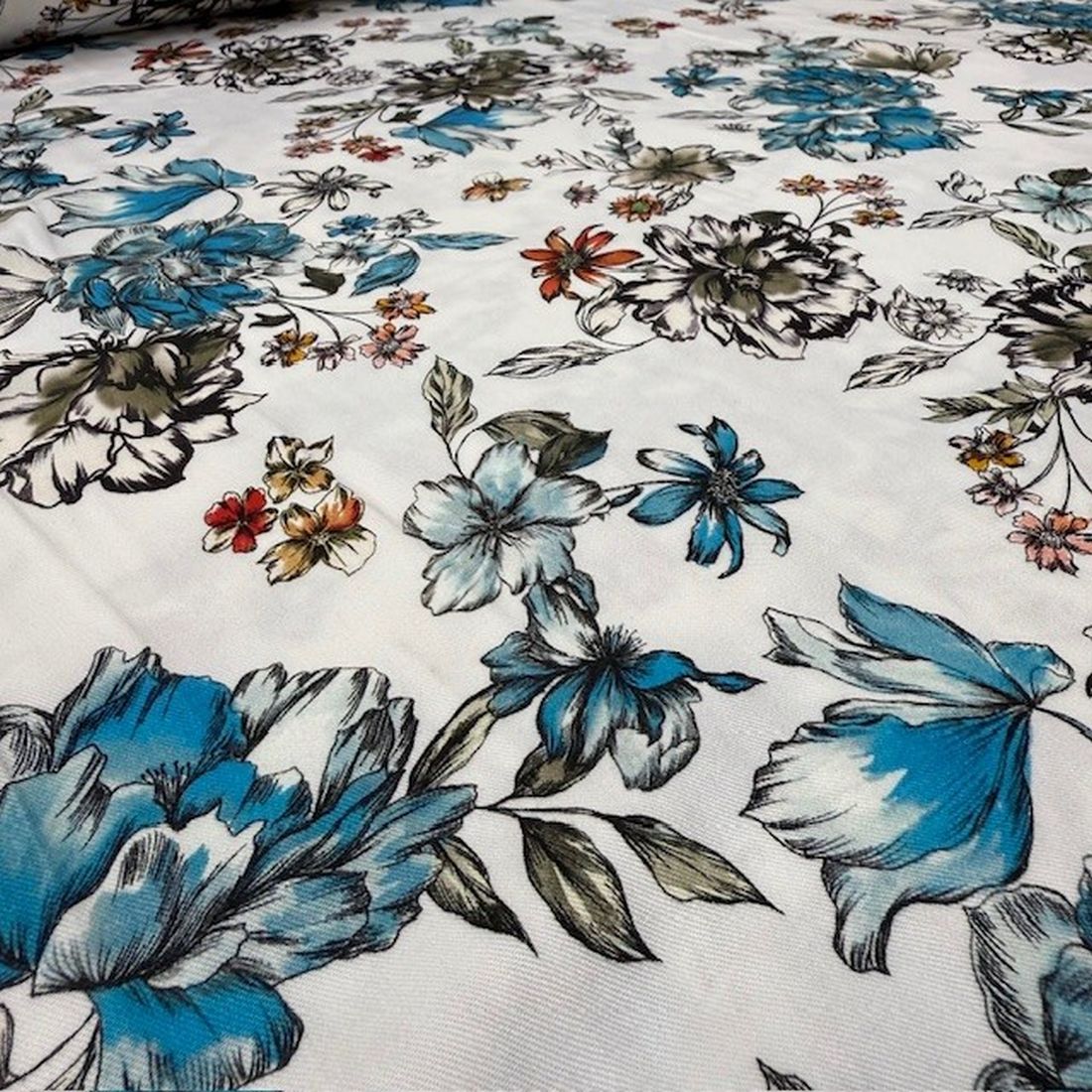Beyaz Mavi Çiçekli Pamuklu Viskon Kumaş YVZ; Genel olarak bakıldığında giyim sektörünün en sık tercih ettiği doğal, rahatsız etmeyen dokusu, hava alabilen dokusu, alerjik reaksiyonlara sebebiyet vermemesi, dökümlü olması vb. özelliklerine bakacak olursak neden bu kadar sık tercih edildiğini ve beğenildiğini anlamış oluyoruz.