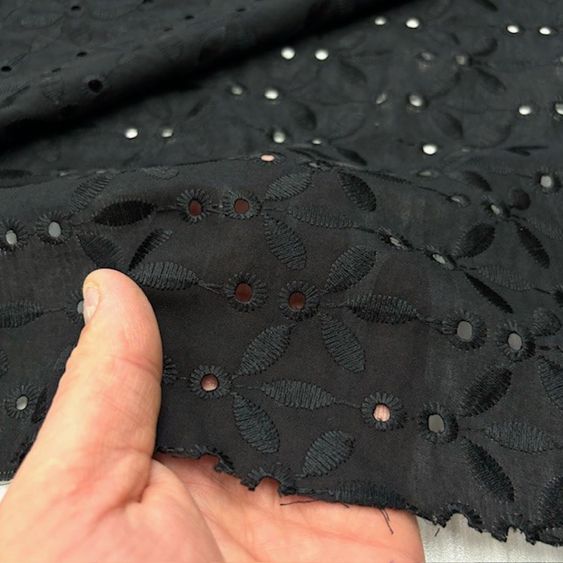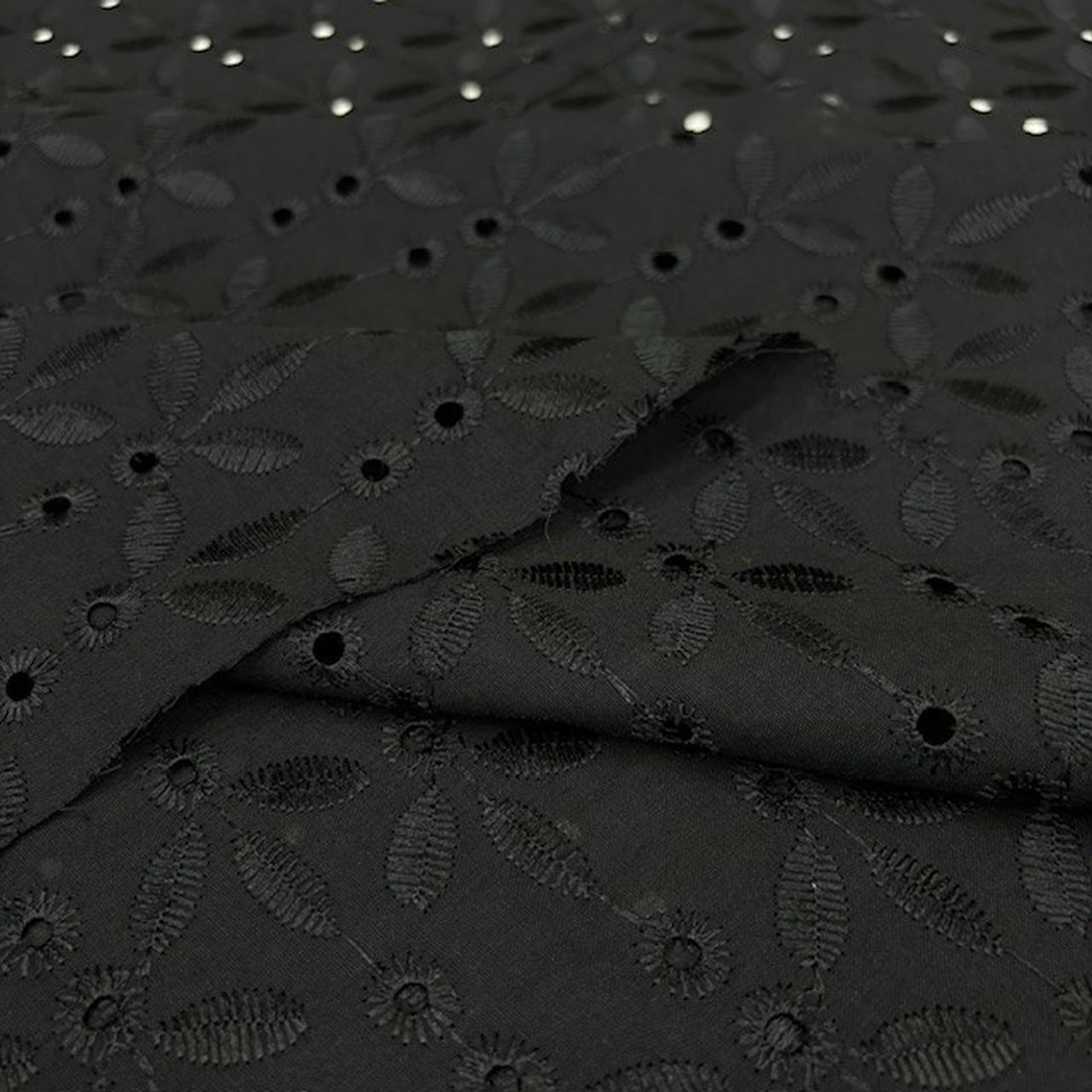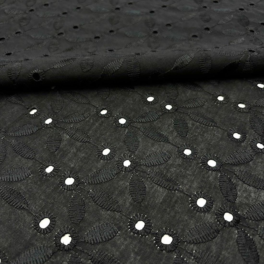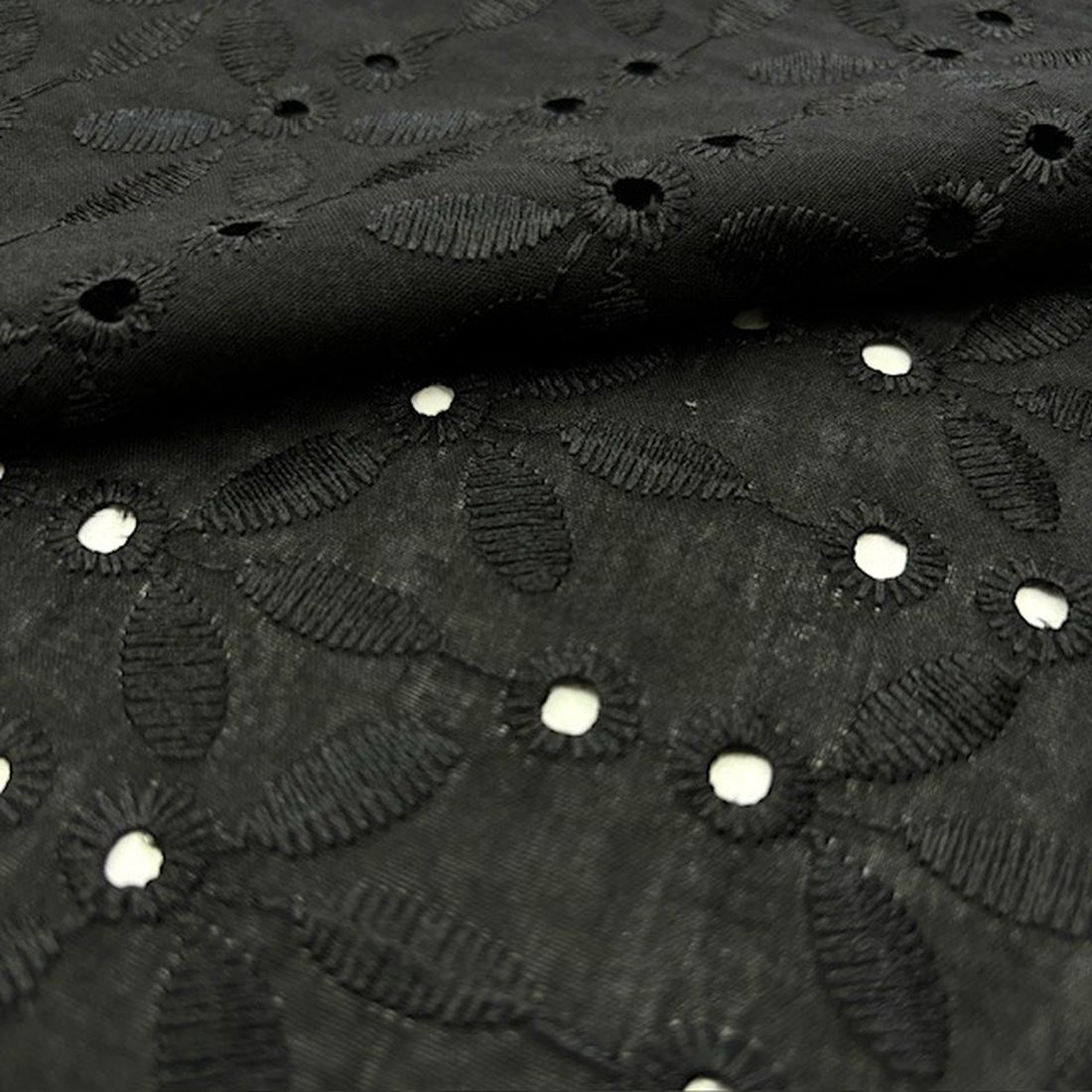 Çiçekli Siyah Pamuk Fisto Kumaş YNS , dantel görünümlü, işlemeli delikleri veya nakışları olan kumaş türüdür. Genel olarak bakıldığında saf pamuk veya pamuklu doğal ürünlerdir. Kumaşın ana materyali genellikle Pamuklu kumaş grubuna giren Pamuk Viskon veya Saf Pamuk Vualdir.