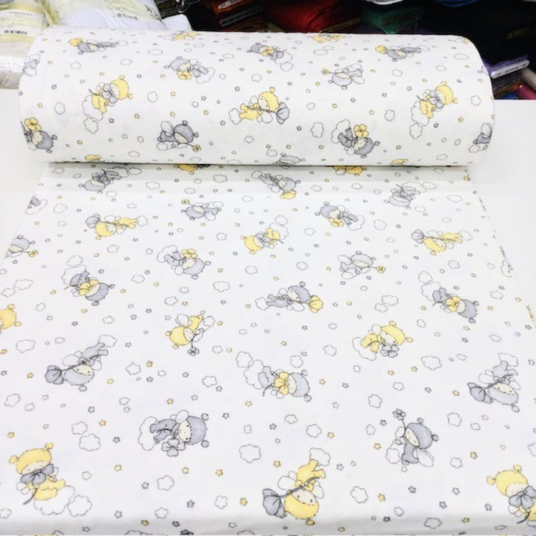 Çiften Bebek Bulut Desenli Pazen Kumaş:saf pamuk içerikli iç kısmı tüylü, yumuşak, dayanıklı, hafif ve rahat bir gramaja sahip kumaştır. Pazen kumaş ev tekstilinde ve giyim sektöründe sıkça tercih edilen sağlıklı bir kumaştır. Saf pamuk içerikli olduğu için pazenler kıyafetlerde yazın terletmeyen kışın da üşütmeyen özelliği vardır ve oldukça dayanıklıdır.