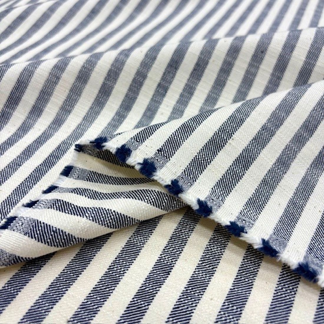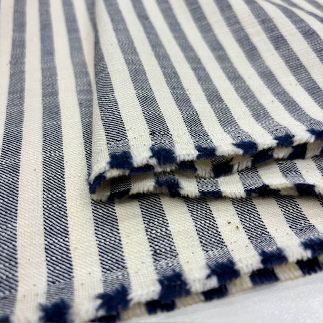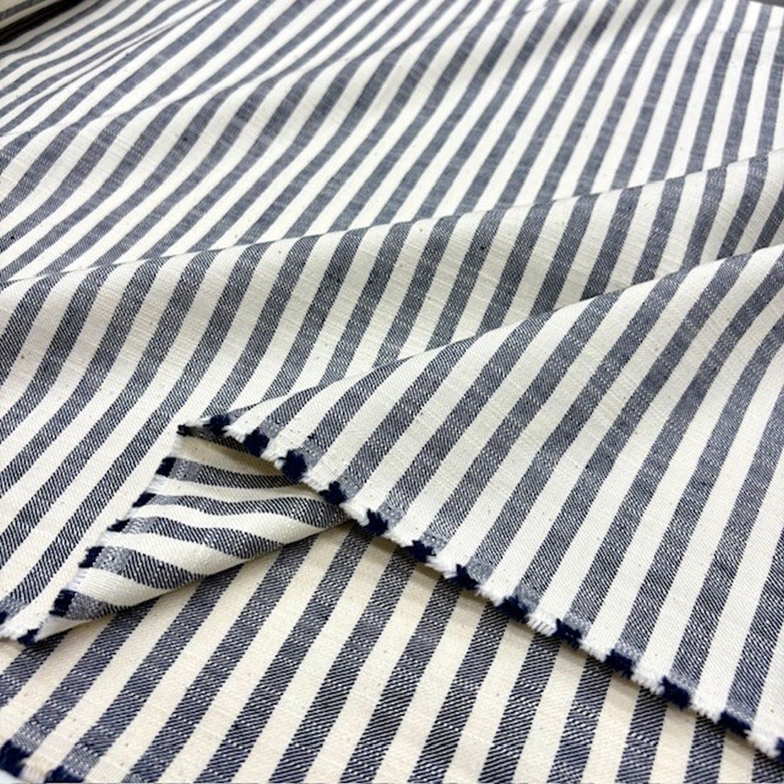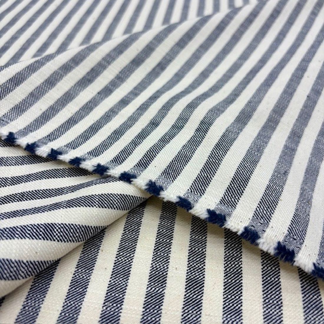 Ekru Mavi Çizgili Pamuklu Keten Kumaş BYR