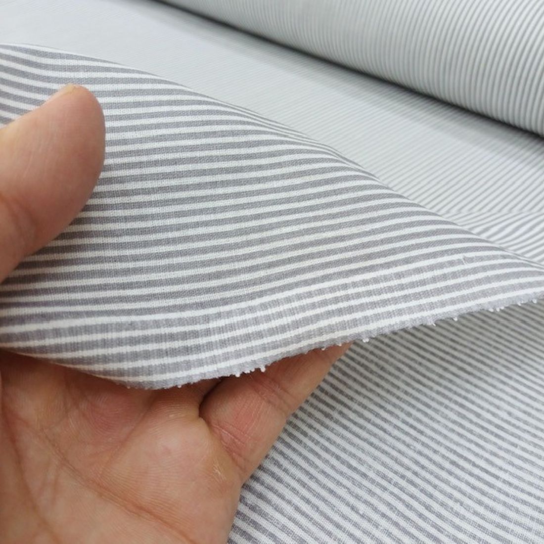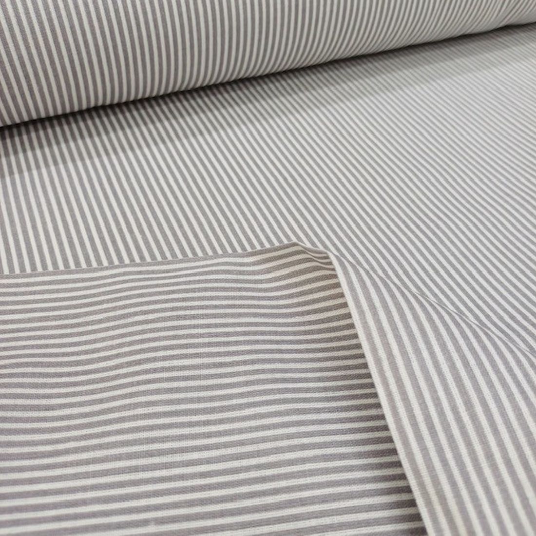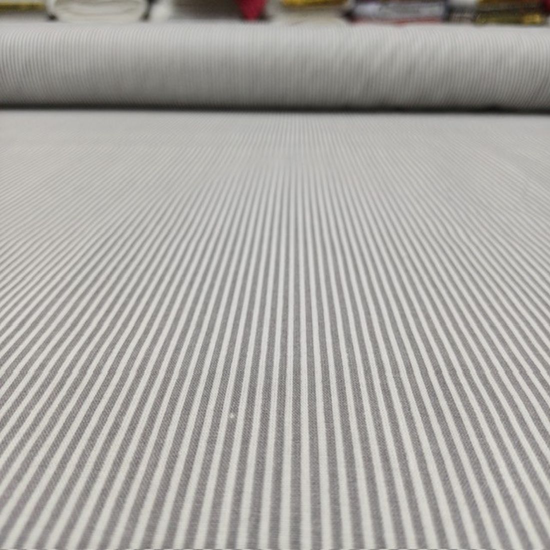 Gri Beyaz Çizgili Poplin Kumaş AYT