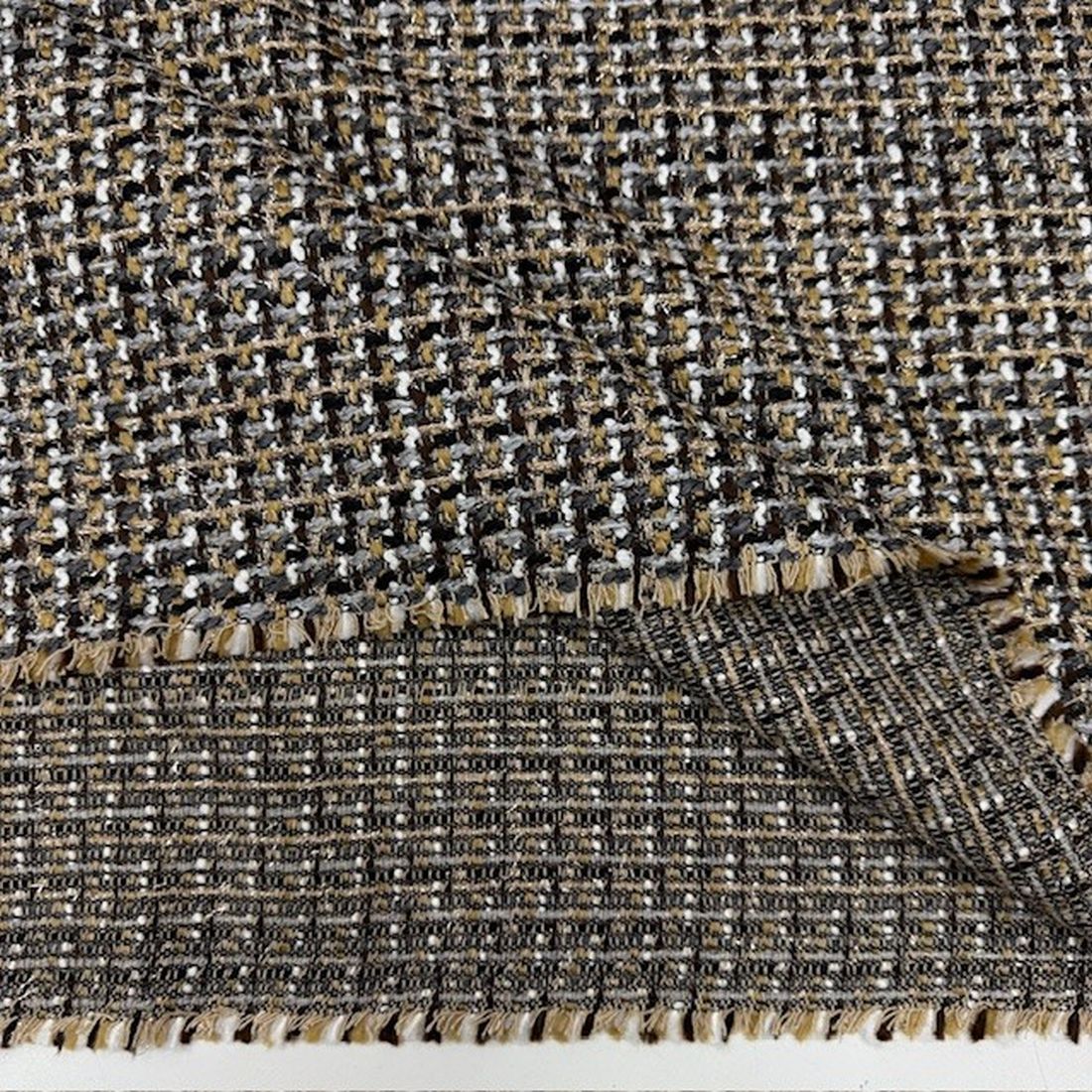 İtalyan Premium Kalite Şanel Kumaş Kahve SRVT; Birçok renkli ipliklerden dokunarak oluşturulan modern, havalı ve şık tasarımlar yakalayabileceğiniz tasarım kumaşlarıdır .Kumaşın en belirgin özelliği farklı renk ve desenlerden oluşmasıdır. Şanel kumaşlar bahar aylarında ve kış aylarında çok sık tercih edilmektedir. Bahar aylarında hava alan dokusu kış aylarında ise kaliteli ve yün iplikler sayesinde sıcak tutabilecek özelliğe sahiptir. Aynı zamanda günlük ve abiye kıyafetlere en çok yakışan kumaştır.