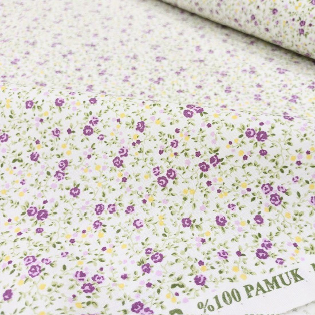 Minik Mor Çiçekli Poplin Kumaş AYT; En eski kumaş türlerinden olan poplin kumaş her yerde rahatlıkla kullanılır. Gömlekten çarşafa, Elbiseden yatak örtüsüne geniş kullanım olanakları sağlar. Çok alakasız gibi gözükse de hemen her yerde kullanılmaktadır. Pamuklu yapısı, tok duruşu ; kalınlık olarak orta kalınlıkta olması bunun için yeterlidir. En sık edilen renkleri beyaz, kırık beyaz, şeker pembe gibi renklerdir.