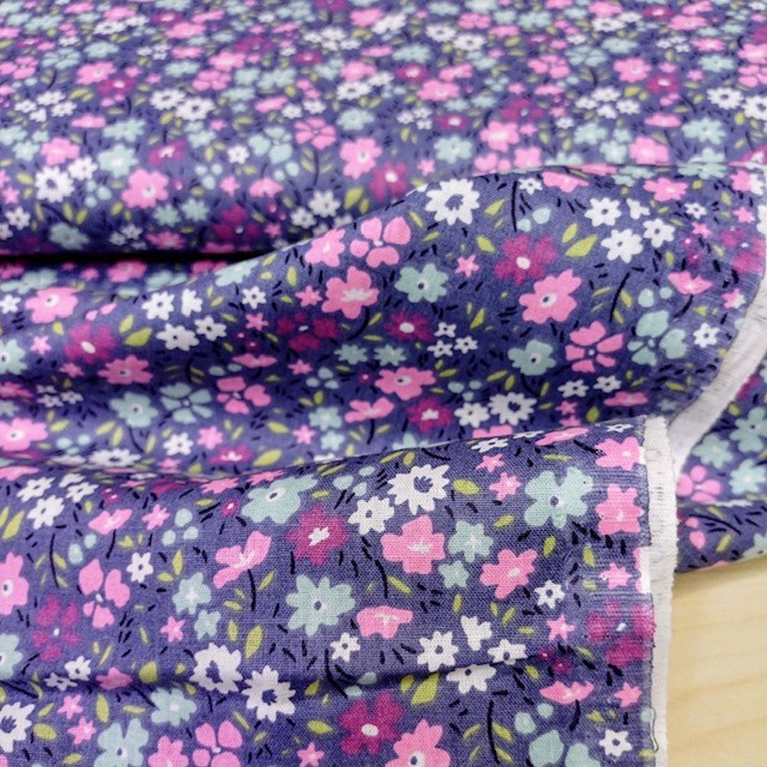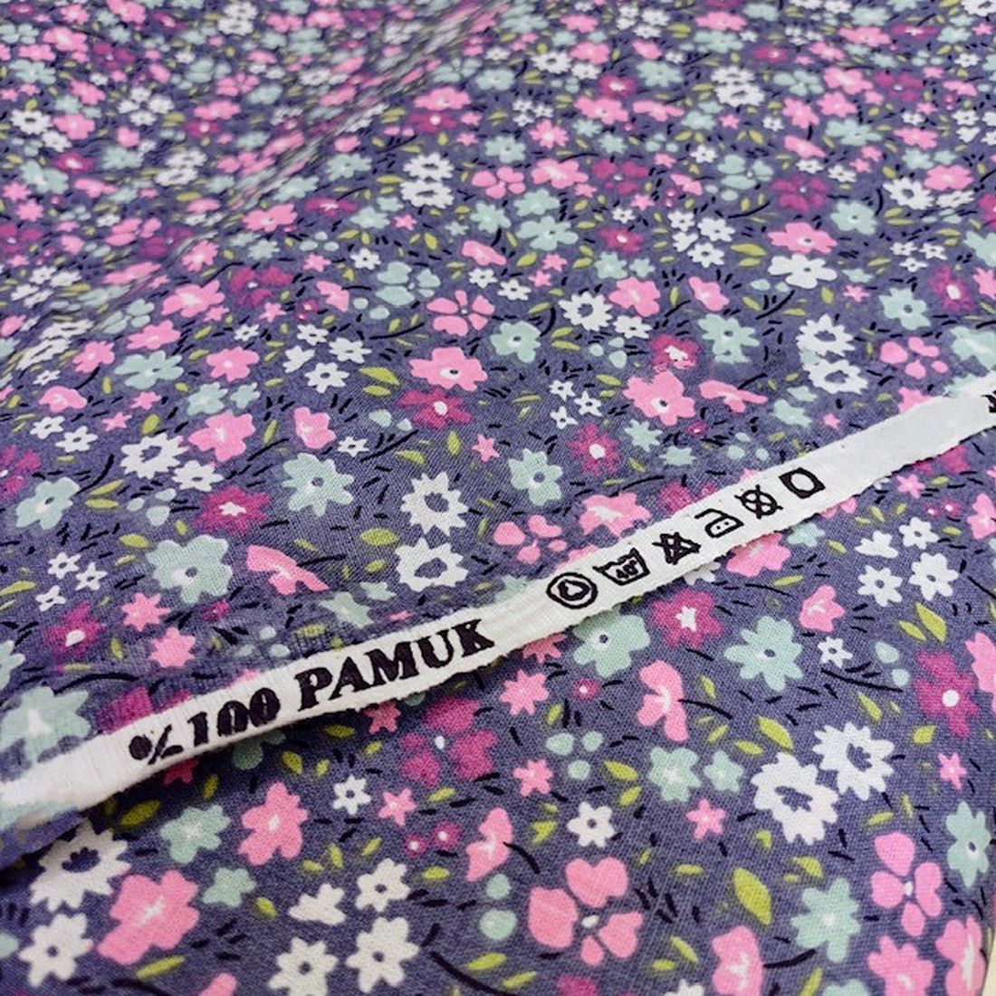 Mor Minik Çiçekli Poplin Kumaş AYT