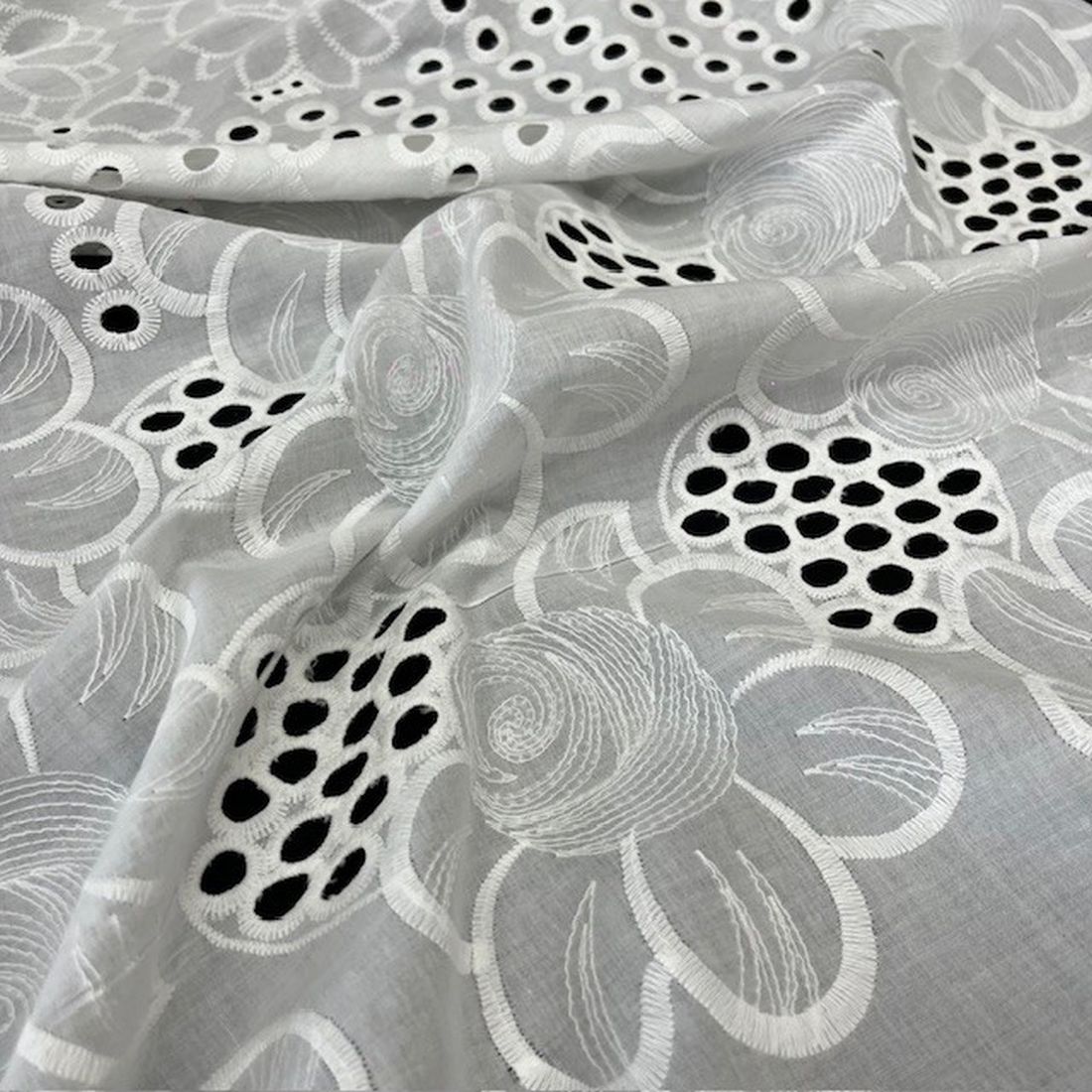 Özel Tasarım Pamuk Fisto Kumaş S1EMR , dantel görünümlü, işlemeli delikleri veya nakışları olan kumaş türüdür.Genel olarak bakıldığında saf pamuk veya pamuklu doğal ürünlerdir.Kumaşın ana materyali genellikle Pamuklu kumaş grubuna giren Pamuk Viskon veya Saf Pamuk Vualdir. Fisto kumaşlar nakışlı görüntüsü ve pamuk içerikli oluşuyla günlük kıyafetlerde tercih edilmesinin yegane sebeplerindendir.Fisto kumaşlar kıyafetlerin birçok bölümünde rahatlıkla kullanılabilir.Dantel gibi polyester içerikli olmadığından rahatsızlık vermez ve terletme yapmaz, içindeki nakışlı delikler sayesinde hava alır ve terleme seviyesini minimize eder.Doğal ve Nakışlı görüntüsü hoş-tatlı bir görünüm sunacaktır.Fisto kumaşlar da deliklerin üstüne veya farklı bölgelere nakış-işleme yapılmaktadır.