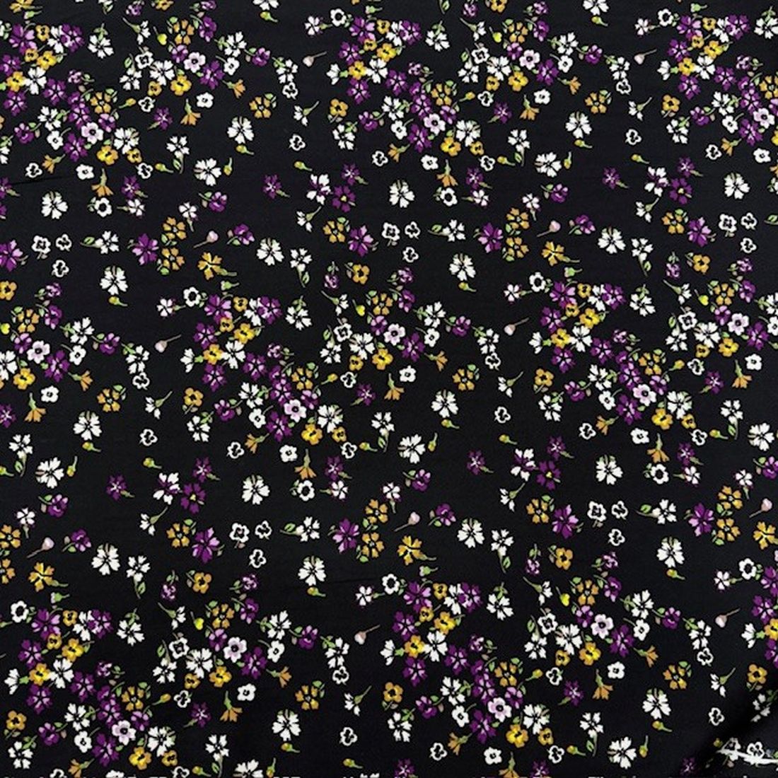 Siyah Çiçekli Pamuklu Viskon Kumaş YVZ