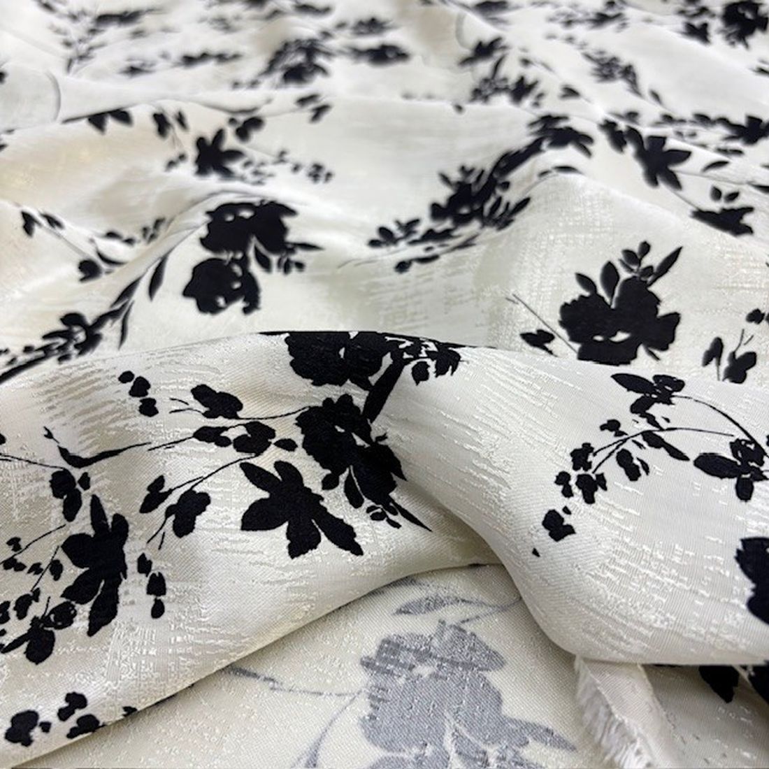 Siyah Çiçekli Tasarım Jakarlı Pamuklu Cupro Kumaş SRVT