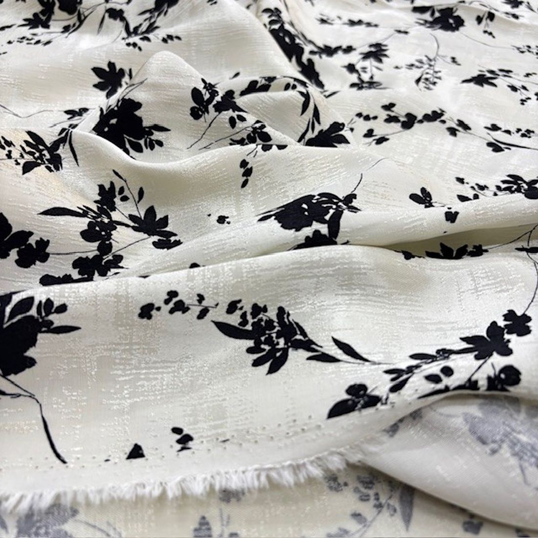 Siyah Çiçekli Tasarım Jakarlı Pamuklu Cupro Kumaş SRVT : Cupro kumaş pamuk lifi ve pamuk özünün saflaştırılması ile elde edilen cupro kumaş yapay ipek olarak da bilinmektedir. Cupro kumaş ipeksi dokuda ve yumuşaklıkta, dökümlü, akıcı ve özellikle yaz aylarında serin tutan taşlanmış bir kumaş türüdür.. Lüks bir kumaştan bekleyeceğiniz döküm, doku, akıcılık ve yumuşaklığa sahiptir.