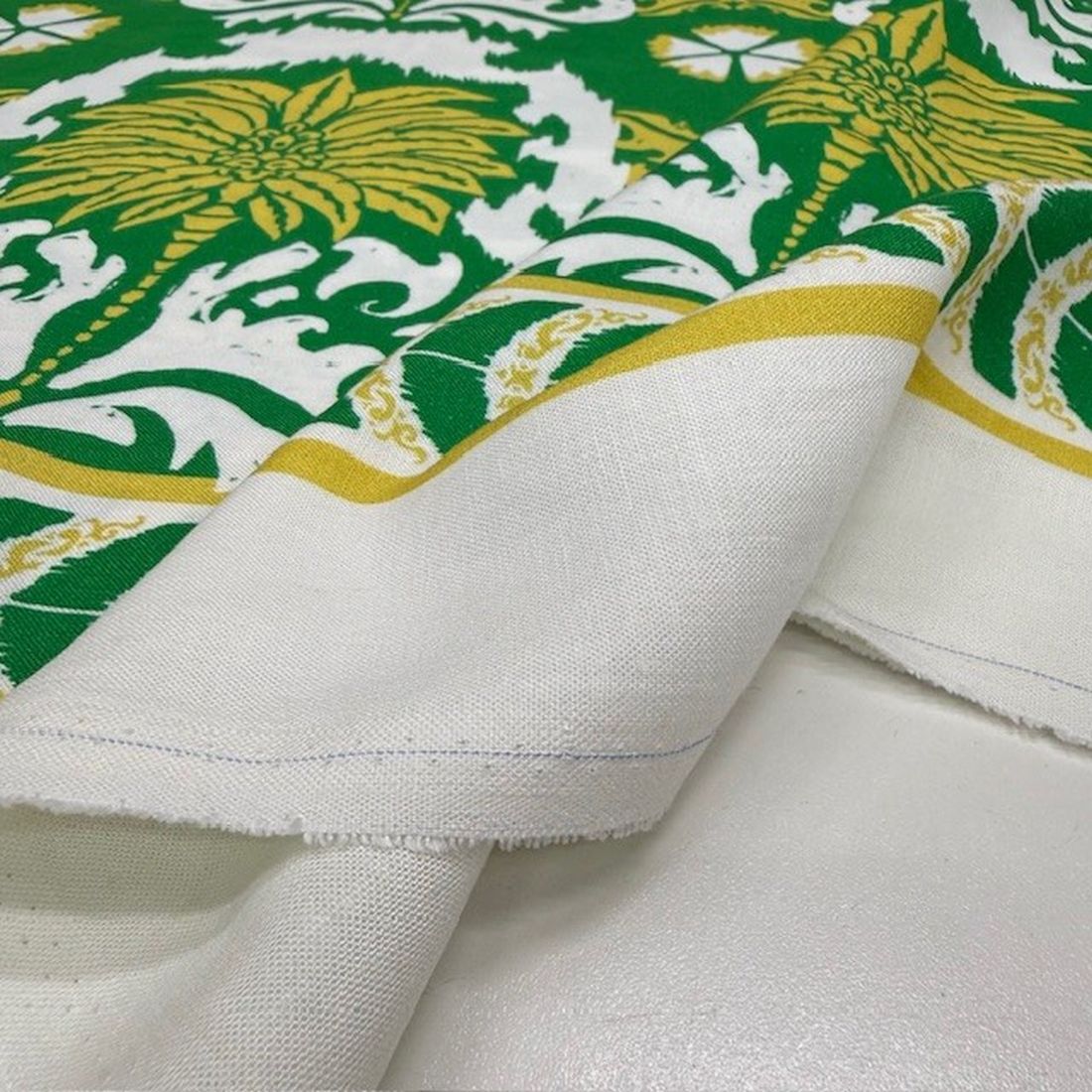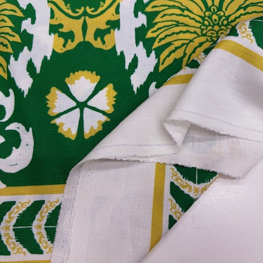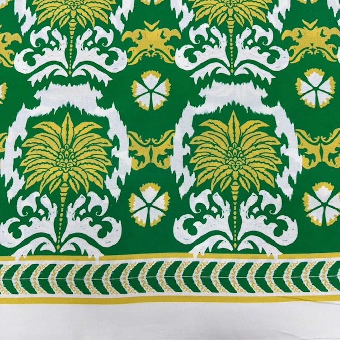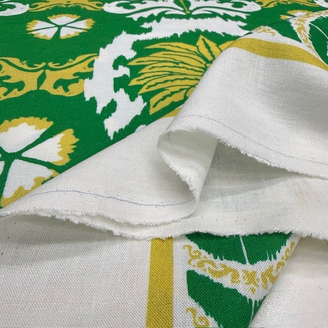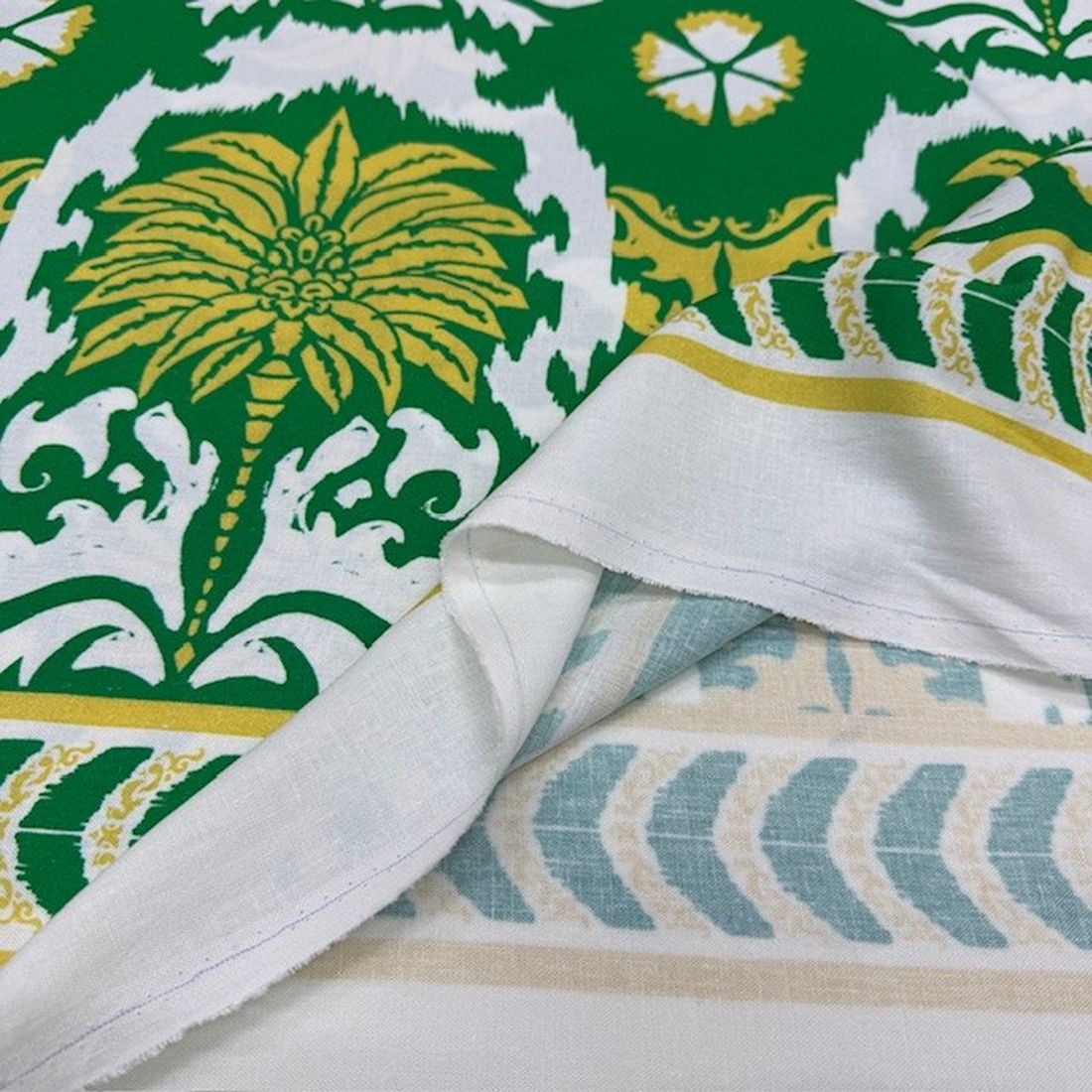 Yeşil Otantik Desenli %100 Keten Kumaş BYR